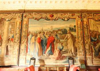 The Mortlake Tapestries on the walls in The Saloon are the most important works of art in the Abbey. They are woven from the cartoons painted by Raphael, that are now on display in the Victoria and Albert Museum and depict the scenes from the lives of St Peter and St Paul, as described in St John’s Gospel and Acts of the Aspostles.