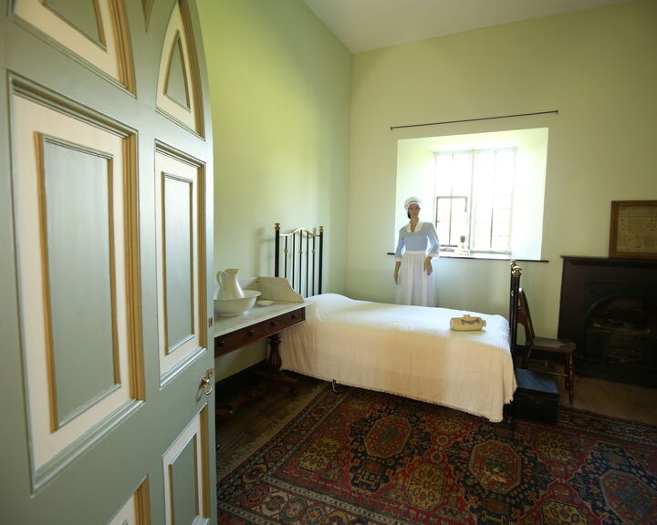The dormitory was built in the 13th century, perhaps on the site of an older building. Its floor is supported by a vaulted ceiling in the Undercroft below. In the 18th century its east side was converted into bedrooms for the servants. The mock vaulted ceiling was installed at this time. Made of plaster, it was inserted below the medieval roof timbers, which still exist above.
