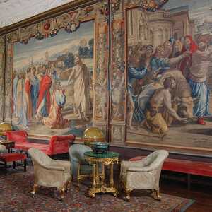 The Mortlake Tapestries on the walls in The Saloon are the most important works of art in the Abbey. They are woven from the cartoons painted by Raphael, that are now on display in the Victoria and Albert Museum and depict the scenes from the lives of St Peter and St Paul, as described in St John’s Gospel and Acts of the Aspostles. The original tapestries were commissioned for the Sistine Chapel, in Rome, by Pope Julius II, and were first woven in Brussels in about 1520. This set was made in London at the Mortlake factory about hundred year later.